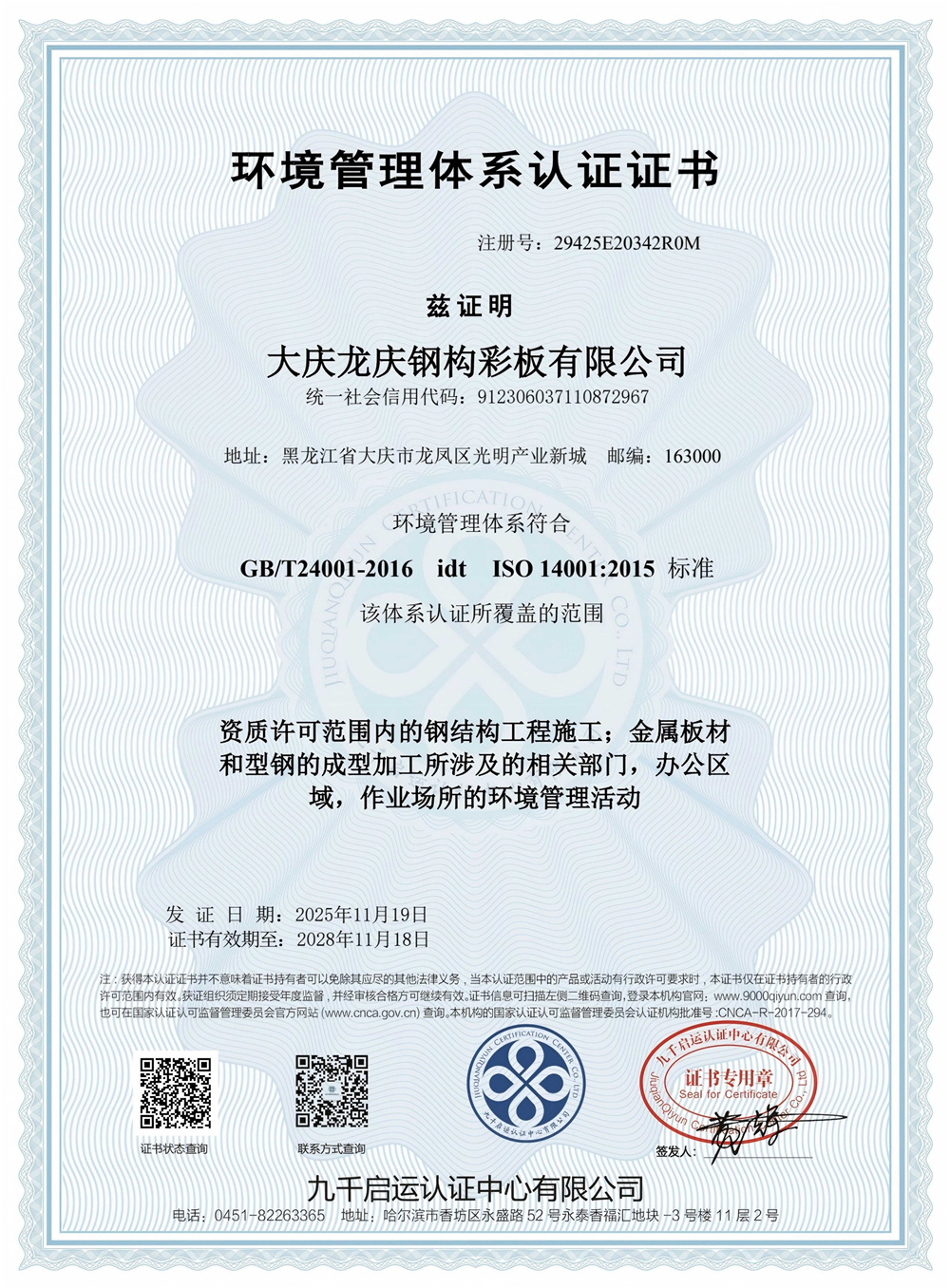 环境管理体系认证证书