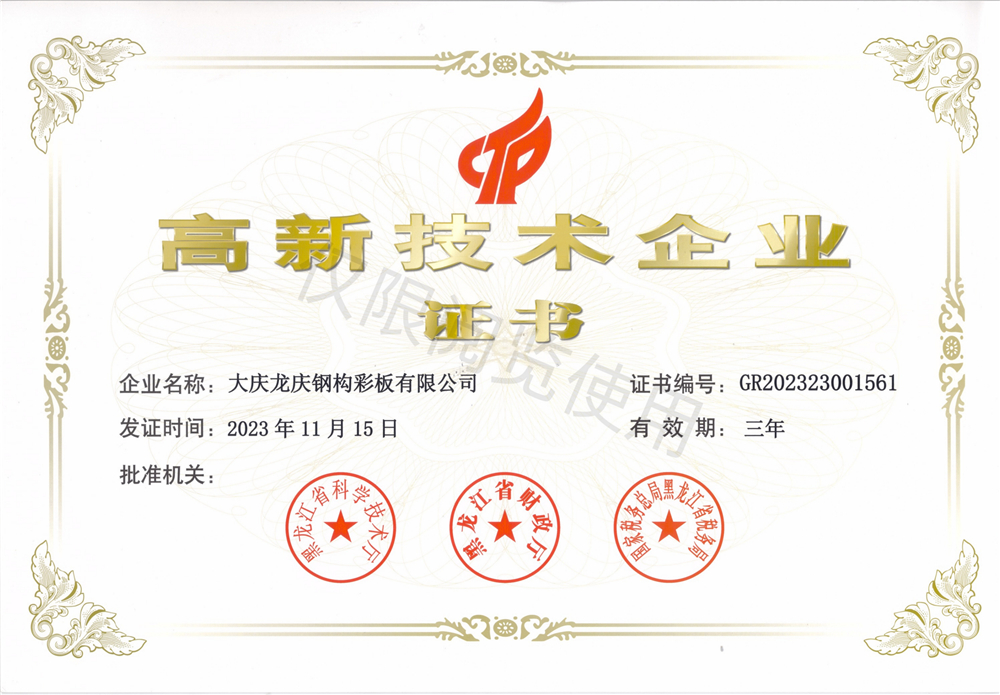 高新技术企业证书